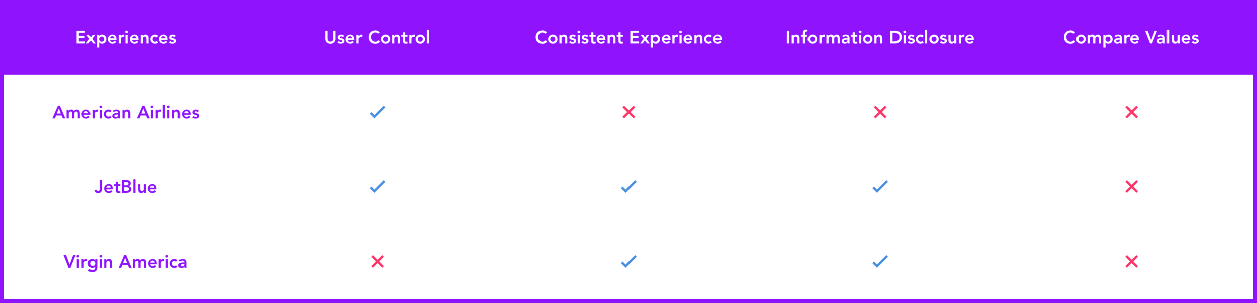 JetBlue and Virgin America's redeem experiences are the same as their purchase experiences meaning users are navigating something familiar. American Airlines' redeem experience is completely different from their purchase experience and counterintuitive.